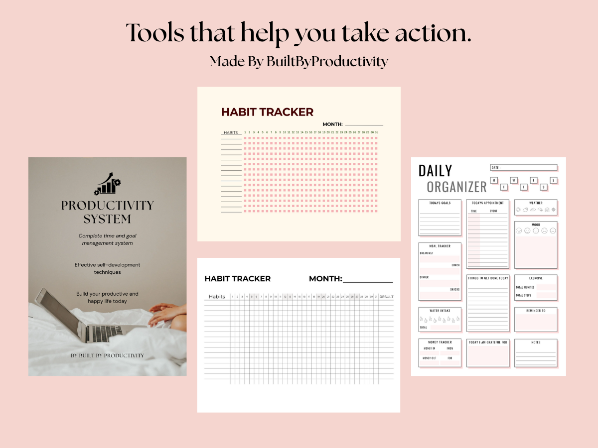 This digital set combines the Productivity System with a Daily Planner, giving you all the tools you need to manage your time, track your habits, and achieve your goals.